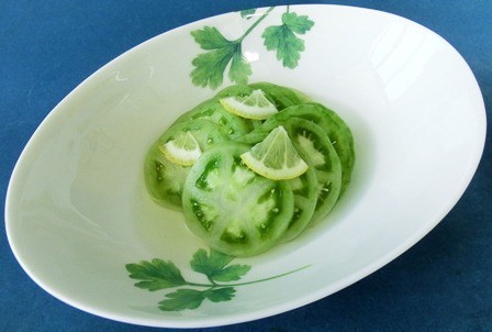 漬物を販売する【おつけもの 丸長】では、サラダ感覚で味わえる漬物をご用意しております。「青トマとサラダ」は、青いトマトをレモン風味で仕上げた漬物です。