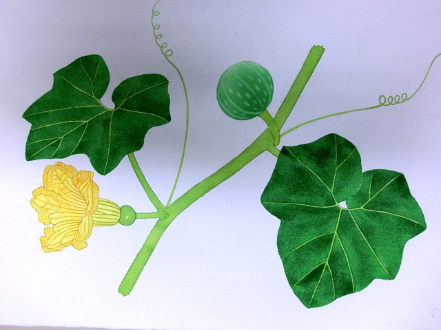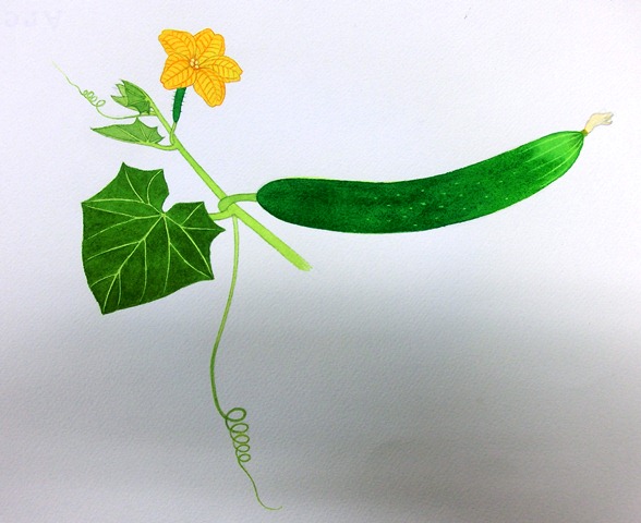 今森洋輔細密画家に描いて頂いた夏の野菜と花をご紹介します。葉っぱの表・裏の違い等が絶妙に描かれてます。